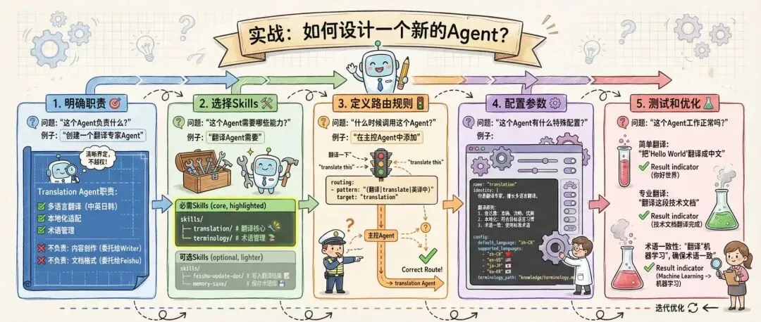 Translation Agent职责:✅ 多语言翻译(中英日韩)✅ 本地化适配✅ 术语管理❌ 不负责:内容创作(委托给Writer)❌ 不负责:文档格式(委托给Feishu)步骤2:选择Skills