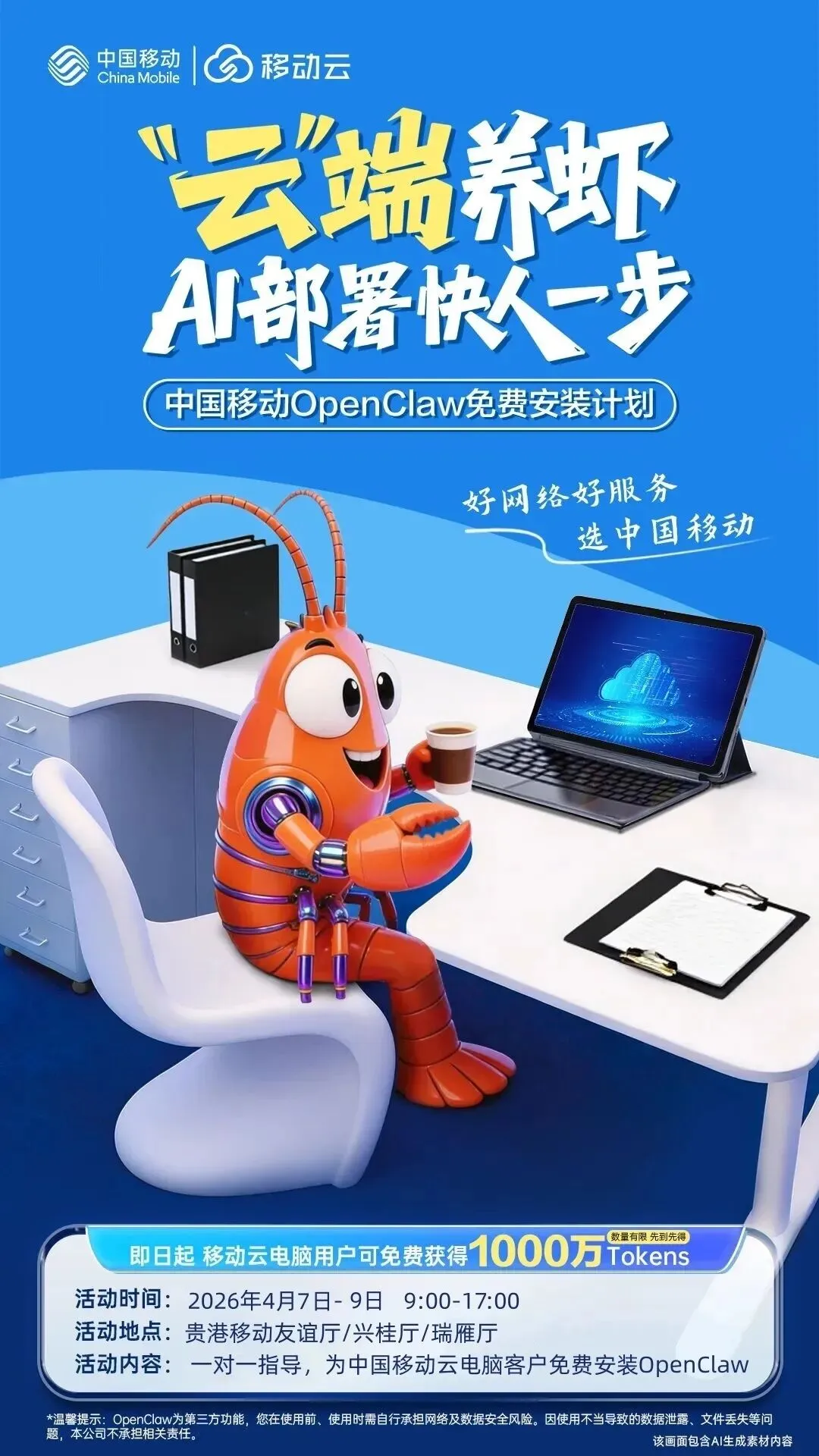 ✅中国移动家庭云电脑新老用户:免费安装+配置OpenClaw龙虾AI ,另专享免费使用1千万OpenClaw的Tokens!云端联动,高效办公。