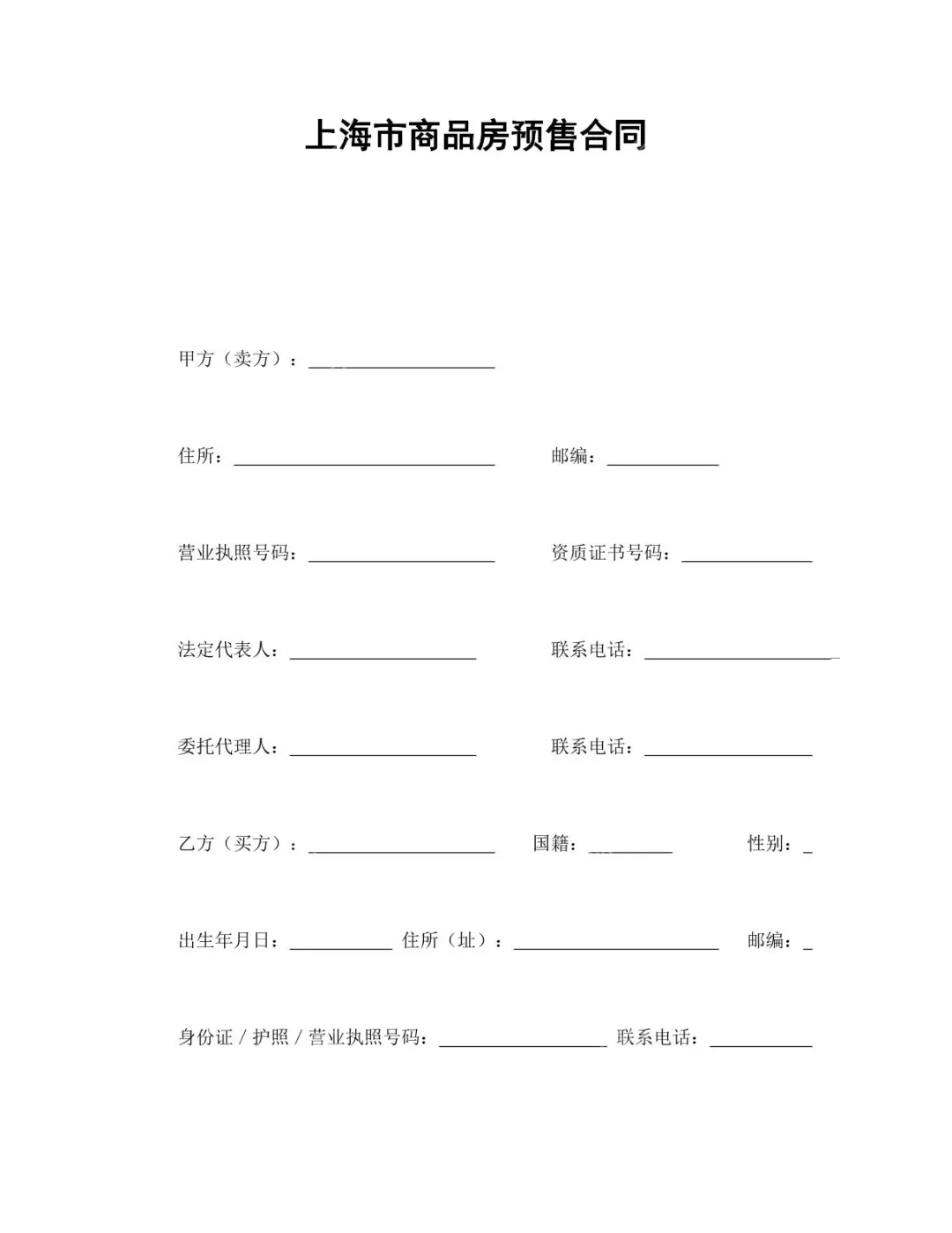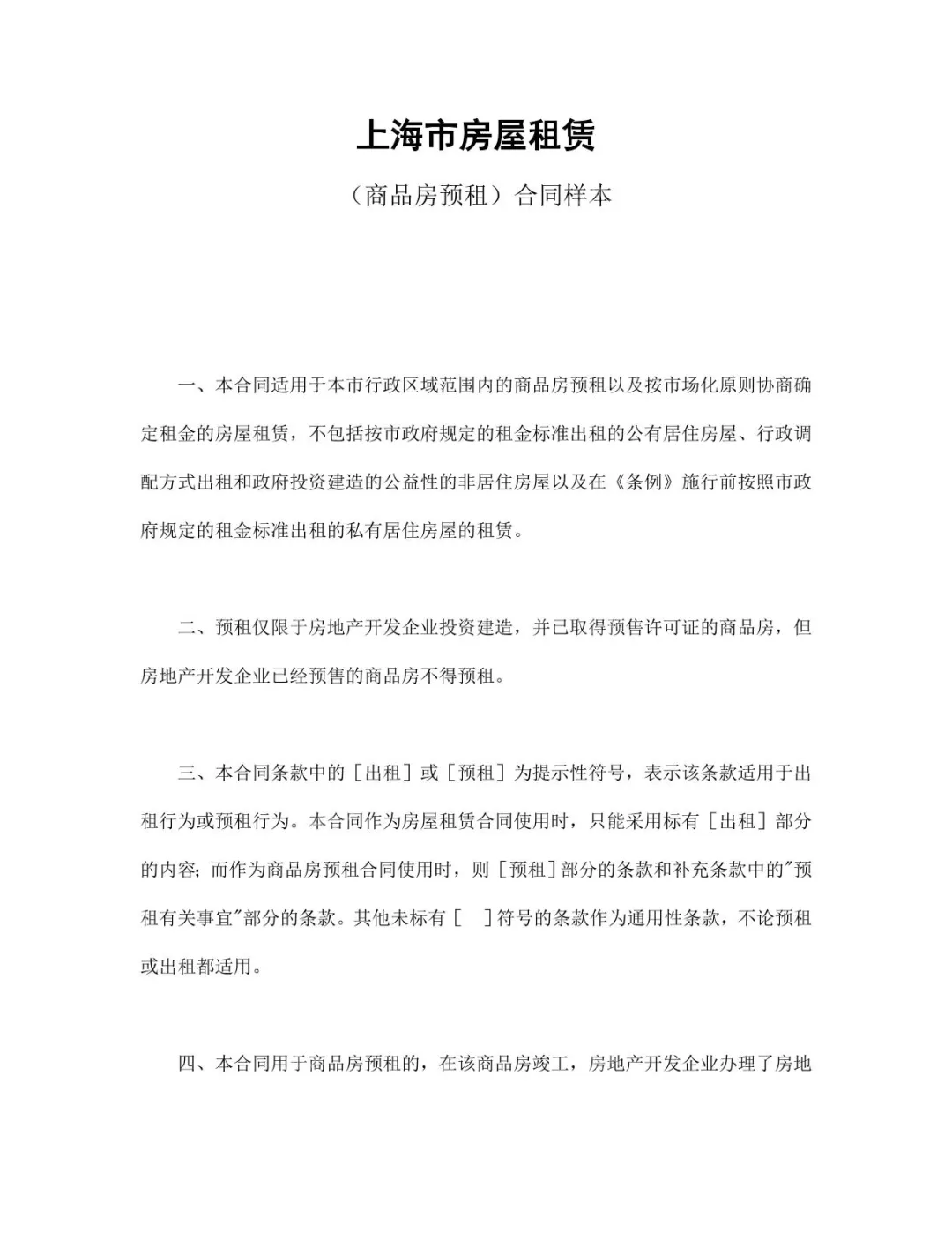 本样本为上海市商品房预租及市场化房屋租赁适用合同,含预租条件、登记备案、适用范围等细则,供租赁双方参照使用。
