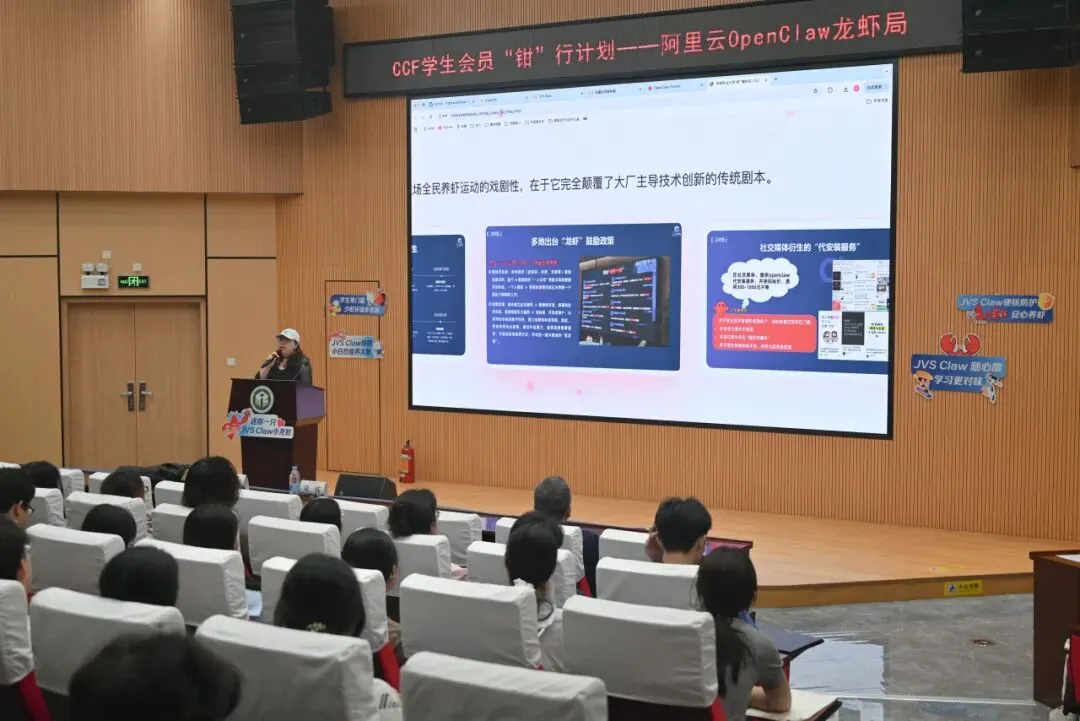 本次活动由中国计算机学会(CCF)主办,华南农业大学数学与信息学院、软件学院,联合CCF华南农业大学学生分会、CCF广州会员活动中心共同承办,面向全校师生及广大AI技术爱好者开展科普实操教学,以“养虾”趣味场景为切入点,生动拆解开源AI智能体OpenClaw的核心技术与落地应用价值。