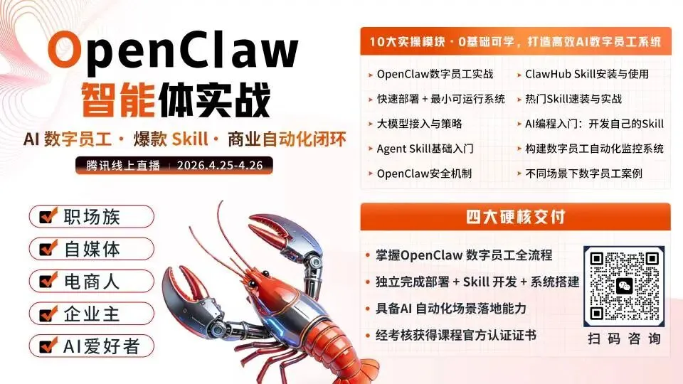 这次OpenClaw智能体实战课,彻底打破你的顾虑!