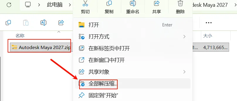 1.选中下载好的安装包,鼠标右键解压到“Autodesk Maya 2027”文件夹