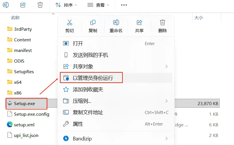 3.选中“Setup.exe”右键以管理员身份运行