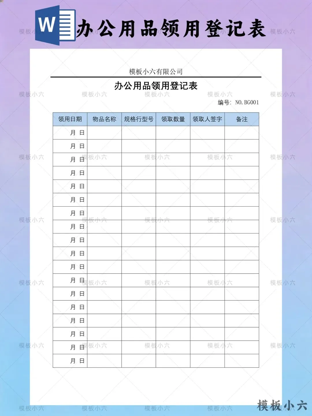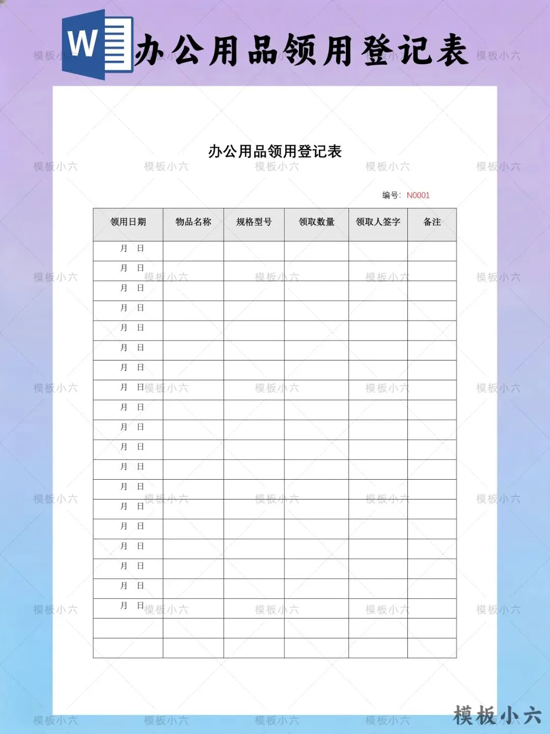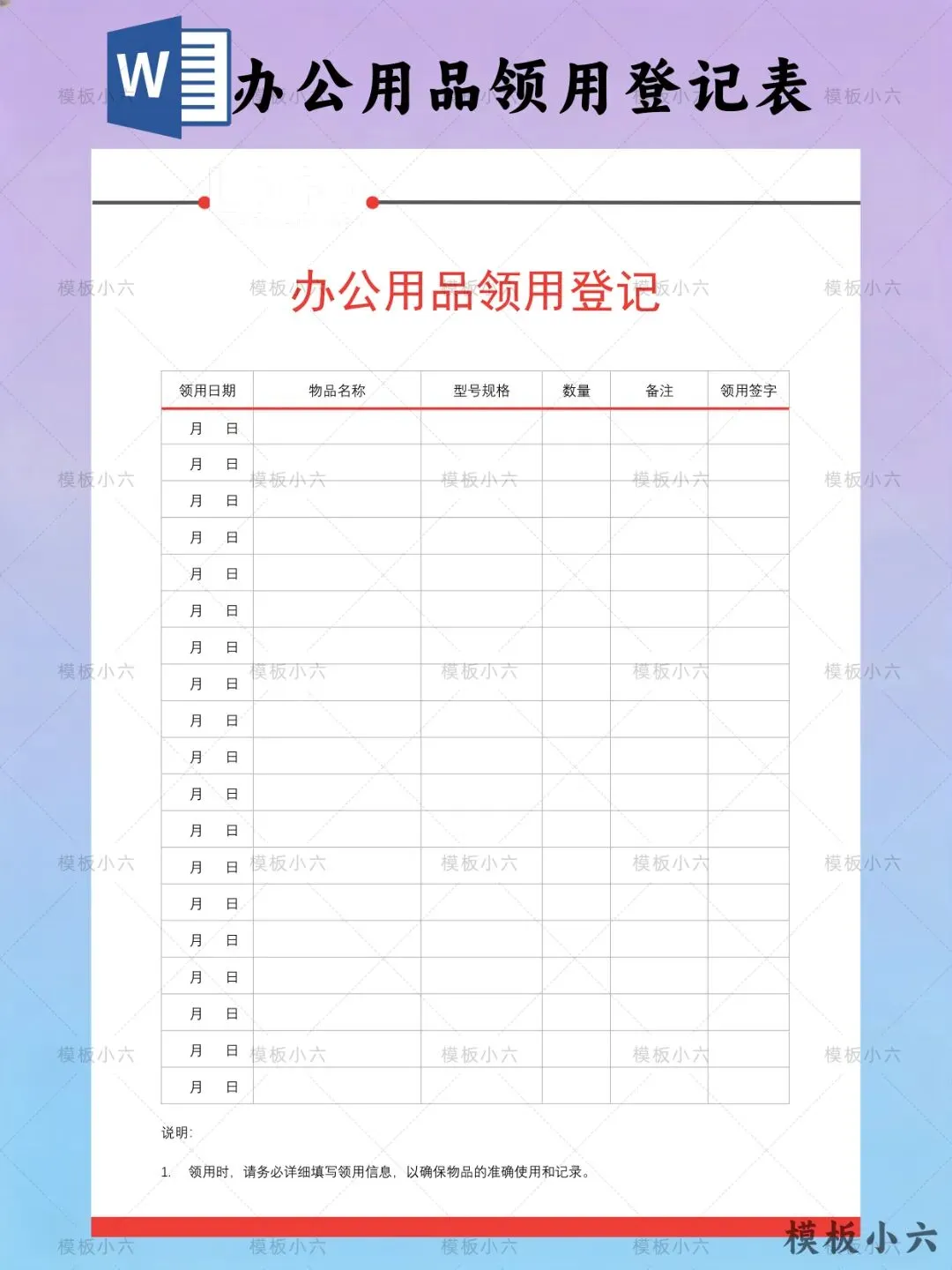 本文内容分享【办公用品领用登记表模板】