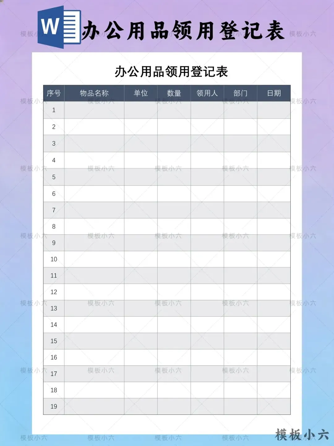 关注后发送消息“办公用品领用登记表模板”