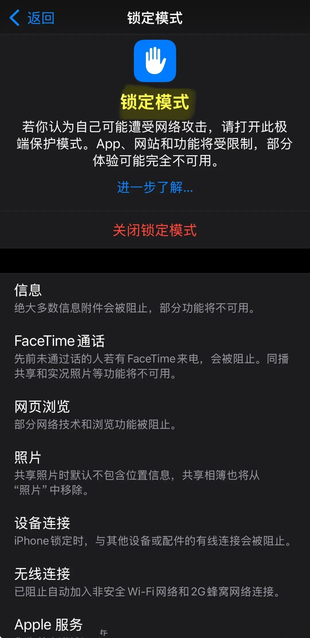 当然其他手机不想升级也可以用这个锁定模式,这个锁定模式会让app正常读取照片等功能出问题,看自己取舍了,
