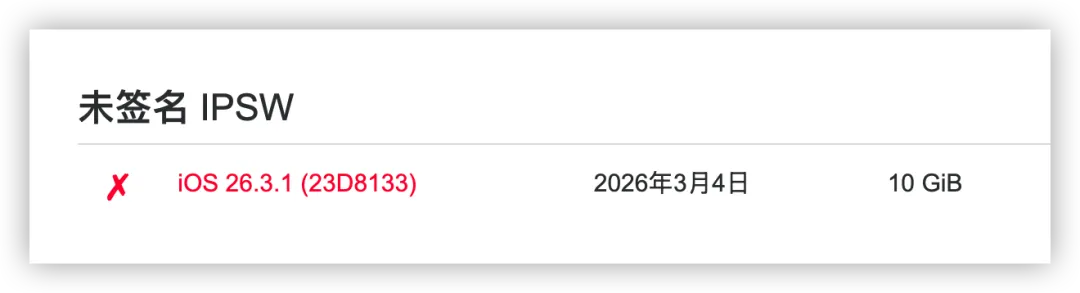 验证页面显示,iOS 26.3.1 正式版已正式停止签名。