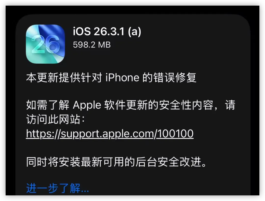 最近,苹果的「大刀」终于又落在了 iOS 26.3.1 上。