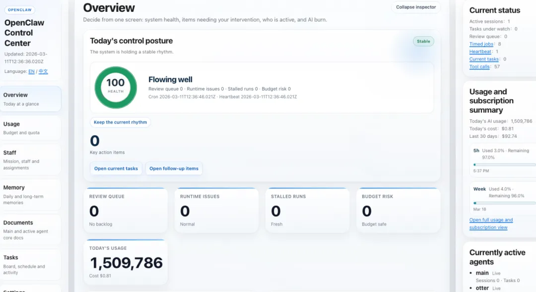 在 OpenClaw Control Center 出现之前,这些问题都没有答案。