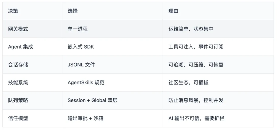 OpenClaw 的选择基于一个判断:个人/小团队场景下,运维复杂度比水平扩展更重要。
