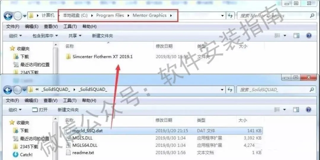 16.将安装目录返回到 C:\ Program Files \ Mentor Graphics \ 位置,并将【_SolidSQUAD_】文件夹中的【mgcld_SSQ.dat】复制到这里