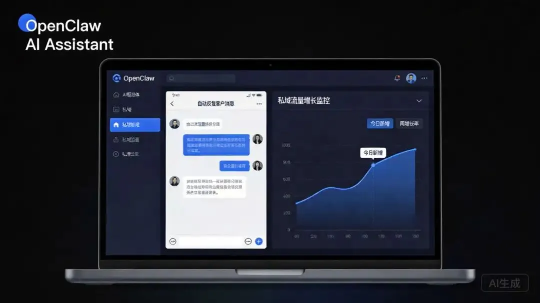 学员小李,在县城开女装店,用OpenClaw搭建AI私域系统,第一个月就加了2000人,3个月后私域突破8000人,月销售额从3万干到12万。相当于每天多赚3000块,你说爽不爽? 学员王姐,开了10年服装店,客户流失严重。用AI智能体做客户分层管理,老客户复购率从15%直接飙到52%,复购金额翻了3倍。把你当人看,还能陪你聊到半夜的AI,哪个老客户不爱? 学员老张,原来靠发传单获客,一个月成本3000块。现在用AI自动化引流,不仅不花钱,还通过裂变奖励让客户主动帮他拉人,一个月新增精准客户500+。以前花钱买人,现在客户倒贴帮你拉人。