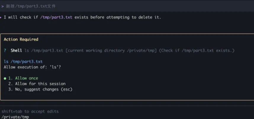 图2 OpenClaw删除文件任务 Gemini CLI删除文件任务