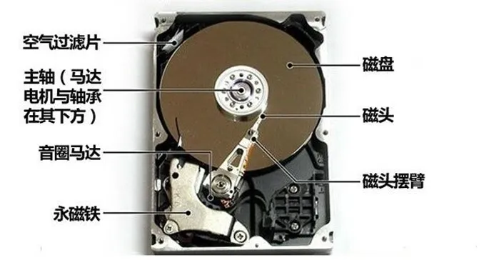 要深入了解这个问题,我们必须从”机械硬盘”的”先天缺陷”说起。让我们先看一张机械硬盘拆解图。