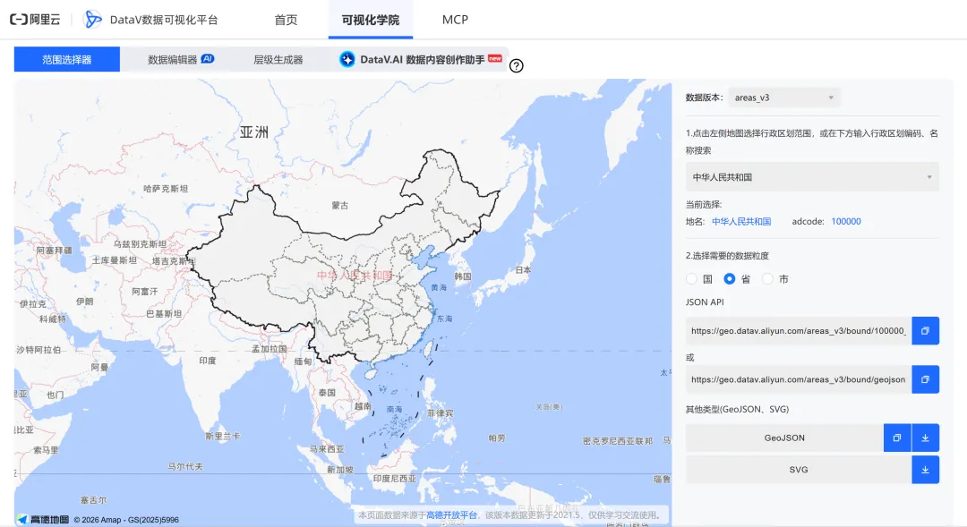 网址:https://datav.aliyun.com/portal/school/atlas/area_selector