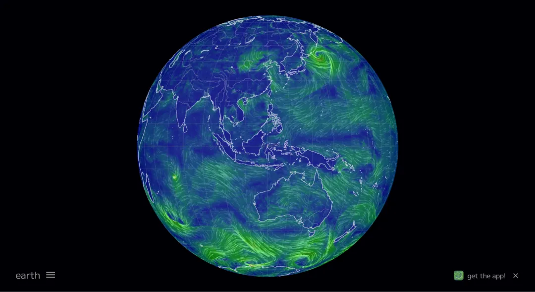 实时模拟全球风向、洋流、天气效果,这个网站的可视化效果、配色都非常绝。