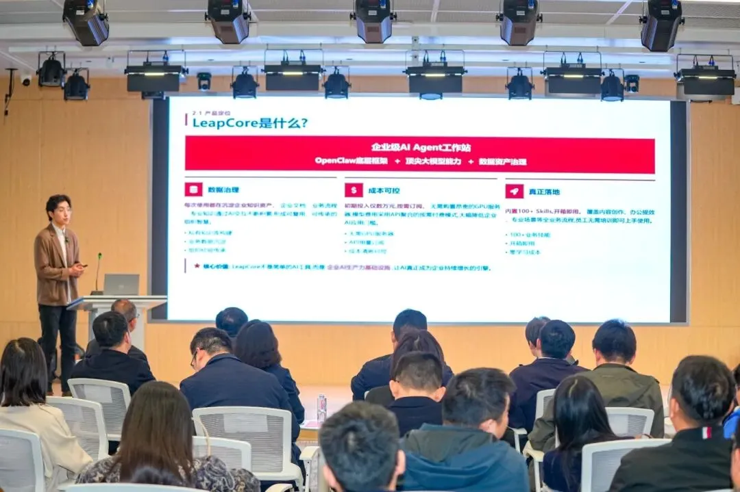 “企业需要的不是简单的聊天机器人,而是真正能干活的生产力工具。”武汉模态跃迁科技有限公司业务总监杨朋伟介绍,其团队打造的LeapCore企业级AI工作站,仅需数万元成本即可实现内网部署、开箱即用,平台内置上百种企业应用技能包,“我们致力于让企业敢用、能用、安全用,推动AI从‘能对话’真正走向‘能落地、能执行’。”