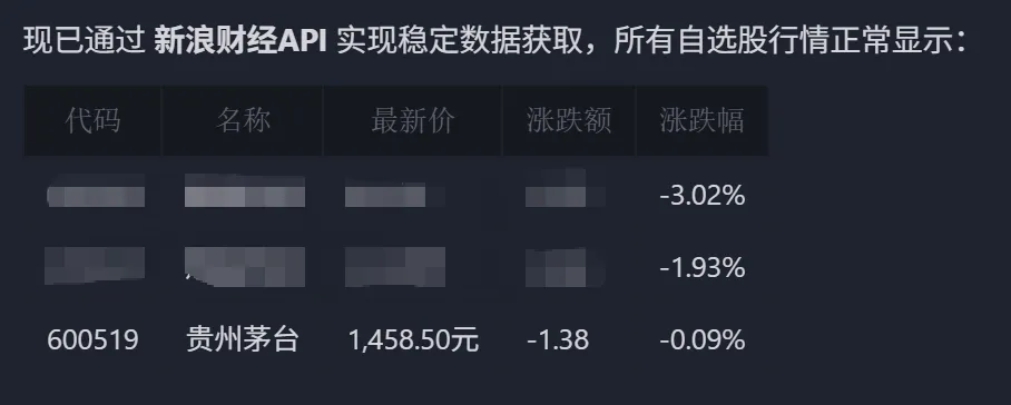 核心功能: 使用新浪/同花顺数据管理A股自选股