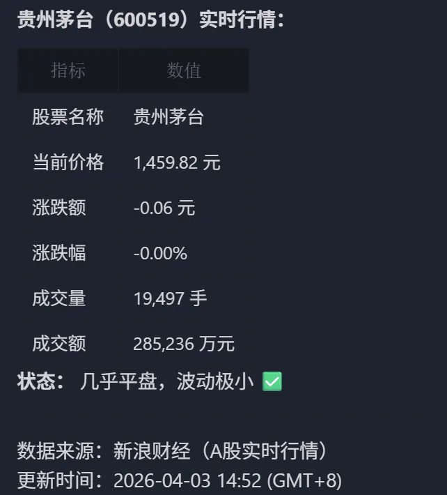 📋 自选股管理(添加/删除/查看,支持沪深、科创板) 📈 实时行情摘要(最新价、涨跌幅、成交量) 🔄 实时数据抓取(新浪财经API) 🔔 涨跌幅预警(自定义阈值,如1%)