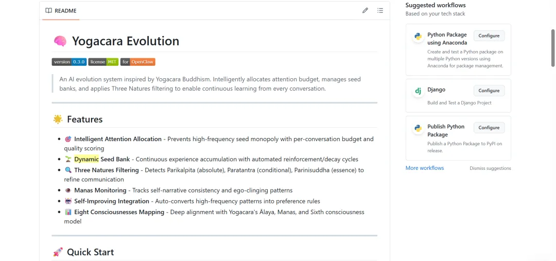 所以,我在GitHub上开源了这个项目,命名为 Yogacara Evolution。