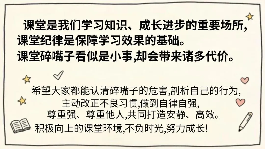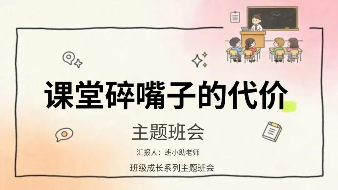 课堂碎嘴子的代价主题班会课件(文末免费下载)点击【沐云图文馆】- 右上角找到【…】立刻设置我为✨星标/置顶✨ - 谢谢你2026中小学生主题班会课件📚↓---以下为模板预览图---↓📖01【模板获取方式】1、复制下方链接内容,打开「百度或夸克网盘APP即可免费获取」;课堂碎嘴子主题班会百度链接: https://pan.baidu.com/s/1jljECyNwjFIZ68DRDLoIMQ?pwd=8888 提取码: 8888 2、关注公众号,在消息窗口发送关键字“课堂碎嘴子”获取下载链接!02【温馨提示】1、模板会通过百度网盘链接发送给大家,大家拿到链接后自行保存领取即可;2、部分模板有偿分享,介意勿扰!注:以上部分图片均来源于网络!如有侵权请联系删除(:喜欢的小伙伴点点右下角的赞和再看!