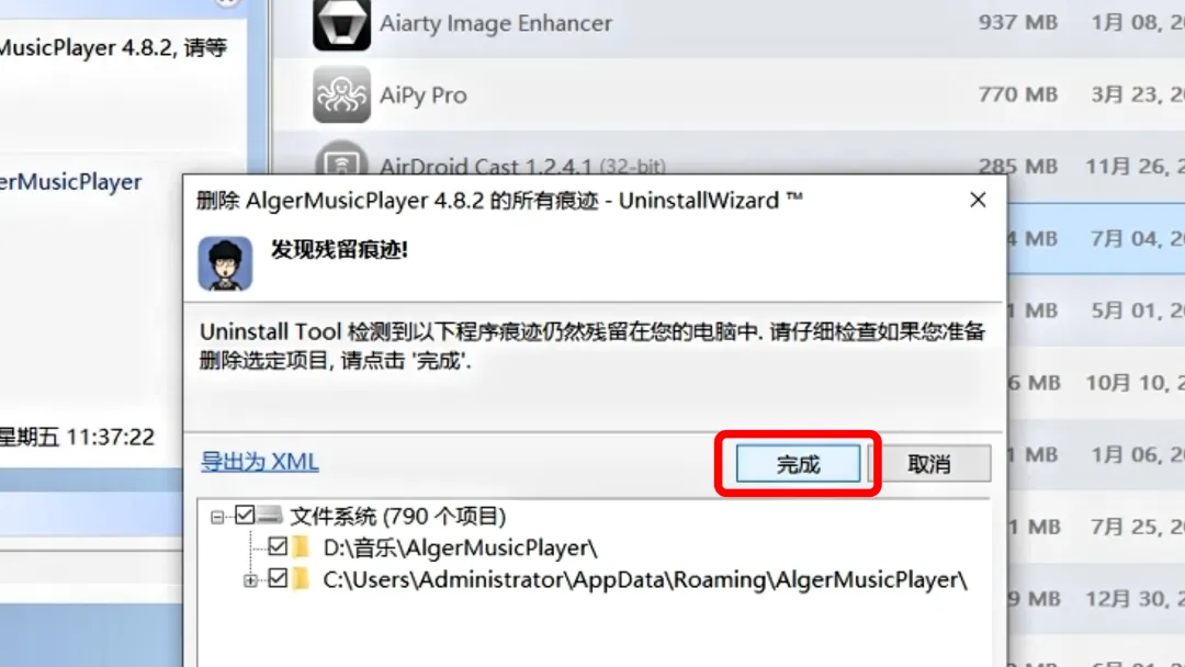 提示你卸载已经完成