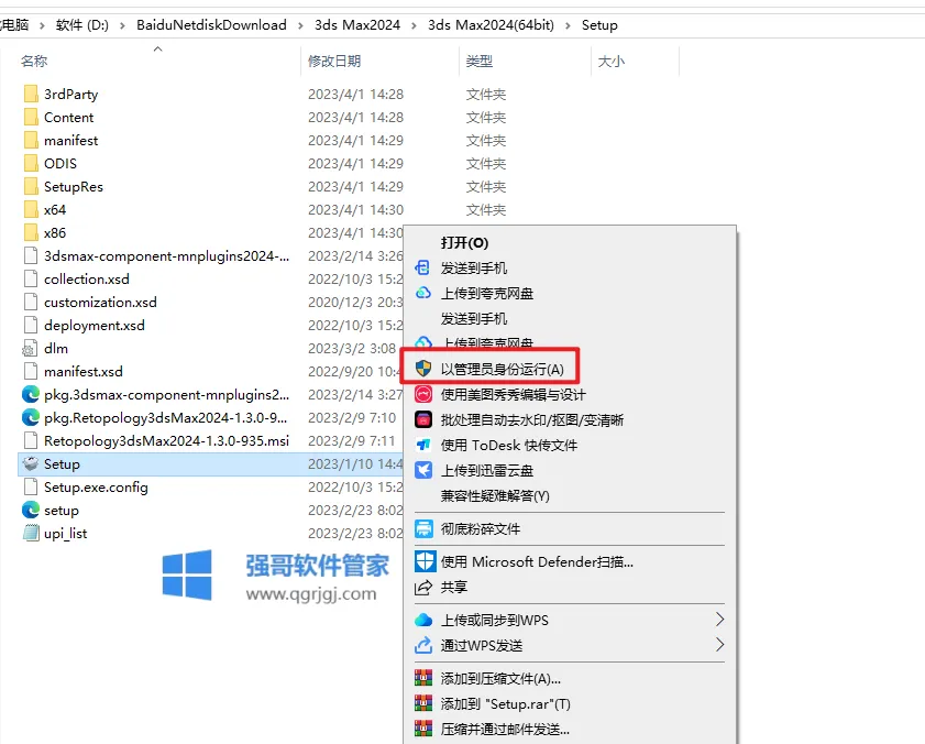 2.打开【Setup】文件夹,选中【Setup】选择【以管理员身份运行】