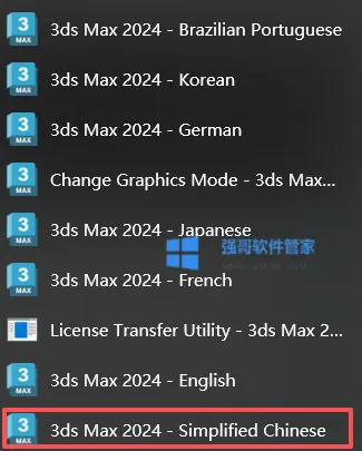 12.安装后有多种语言点击开始-所有程序-Autodesk-3ds Max 2024 - Simplified Chinese。