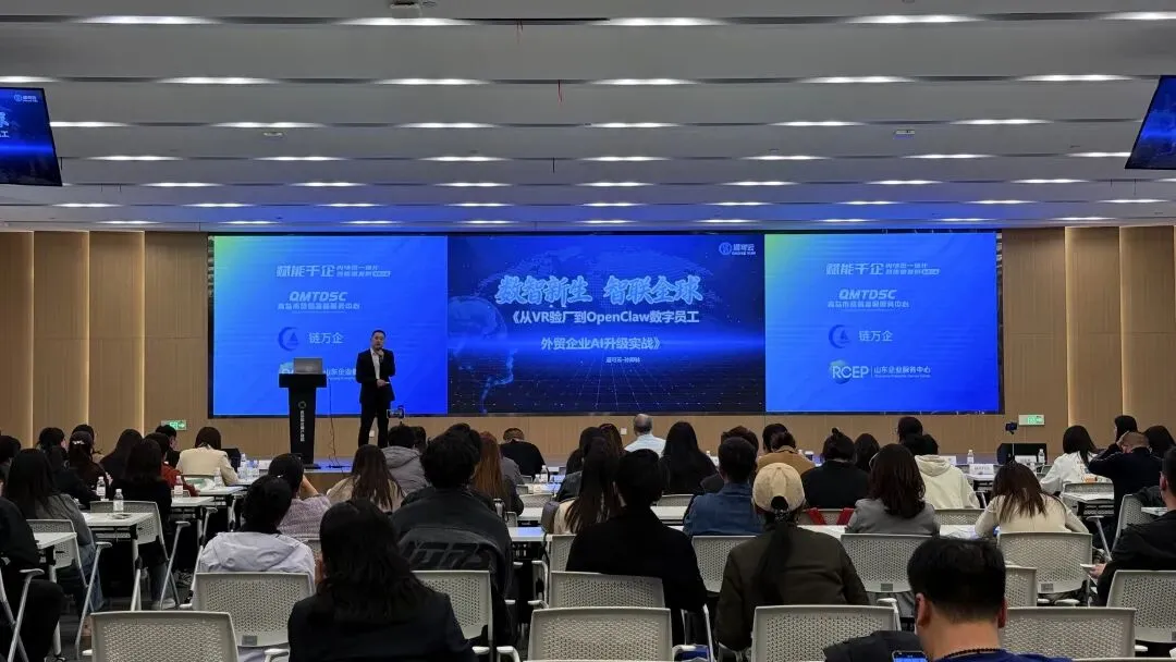 4月1日,由青岛市商务局指导、青岛市贸易发展服务中心主办的“数智驱动 质胜未来——OPC赋能·AI驱动外贸企业创新发展对接交流活动”成功举行。来自政府部门、商协会、外贸企业及AI科技服务商等数百名代表参会,共同探讨人工智能与外贸场景深度融合的发展路径。