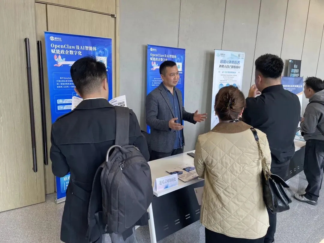 在对接交流区,道可云集中展示OpenClaw相关应用及VR 验厂、外贸智能体等落地产品与实战案例。活动结束后,不少参会企业代表前往展位深入咨询,围绕AI智能体部署、海外营销自动化、数字员工落地等具体问题展开交流,现场对接氛围热烈,多家企业表达了进一步合作意向。