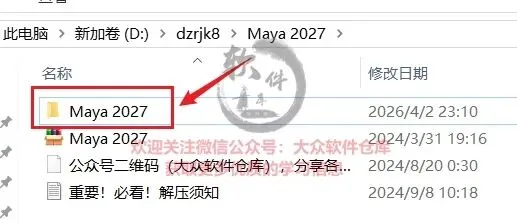 2.双击打开Maya 2027文件夹;