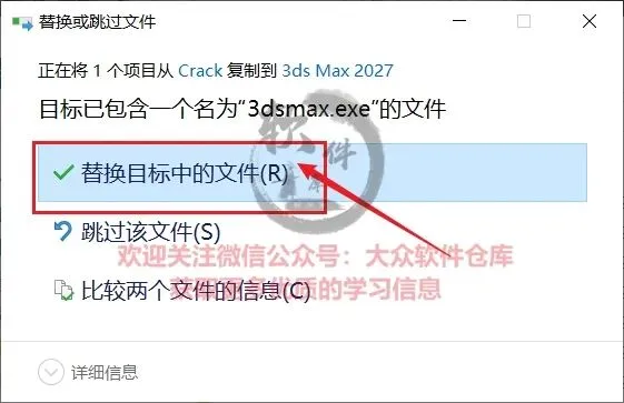 14.点击替换目标中的文件;