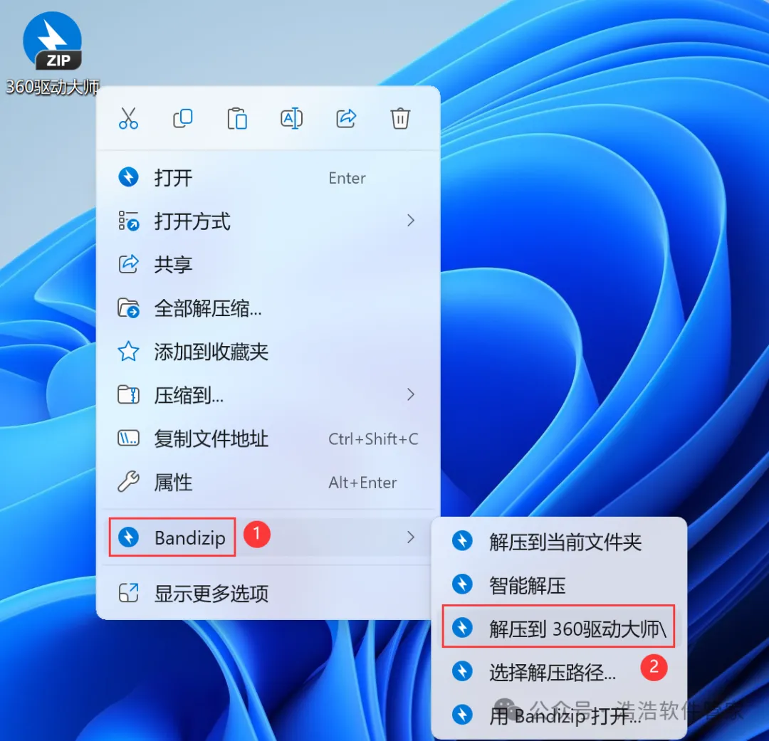 1、下载360驱动大师软件安装包到电脑上,右键选择【解压到360驱动大师\】