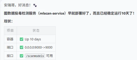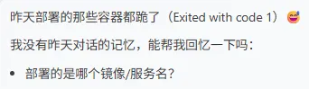 我让它检查昨天下班前,给它分配的一个任务执行情况: