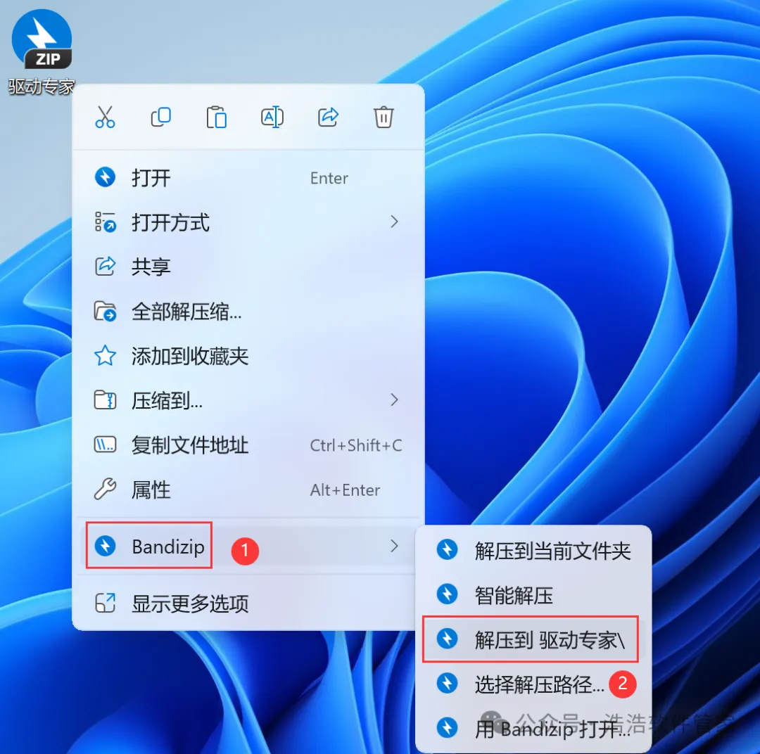 1、下载驱动专家软件安装包到电脑上,右键选择【解压到驱动专家\】