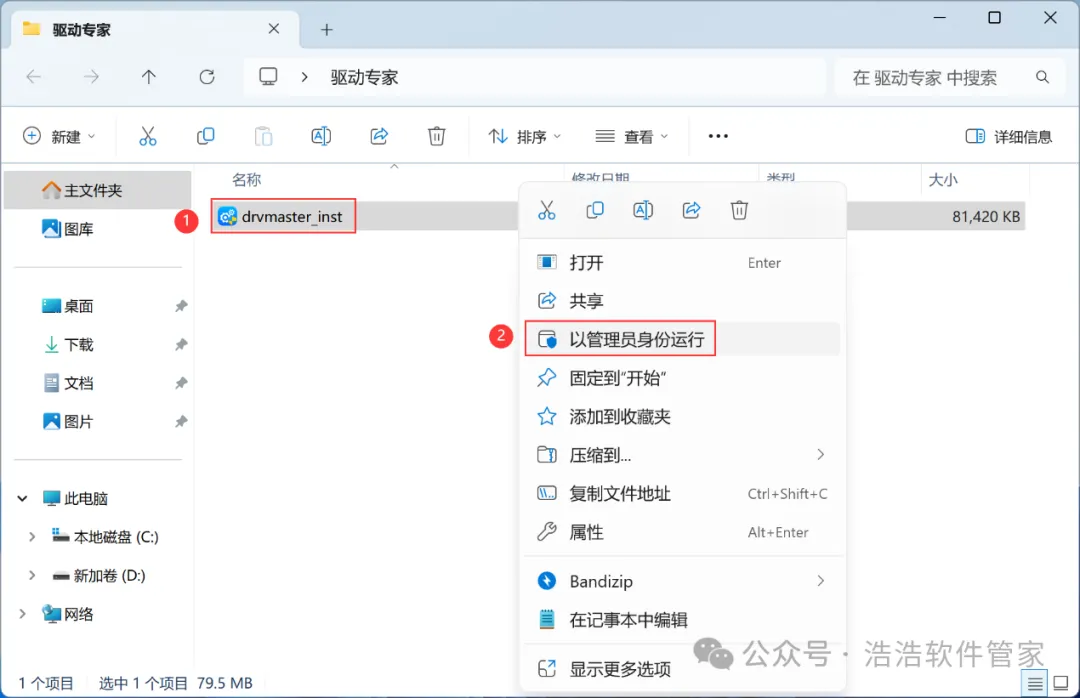 3、找到【驱动专家】应用程序,右键选择【以管理员身份运行】它