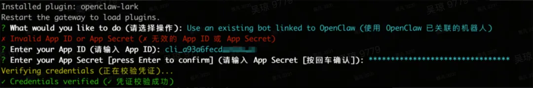 选择关联已有机器人时,若提示无效的AppID或AppSecret,可手动输入正确的应用凭证信息。
