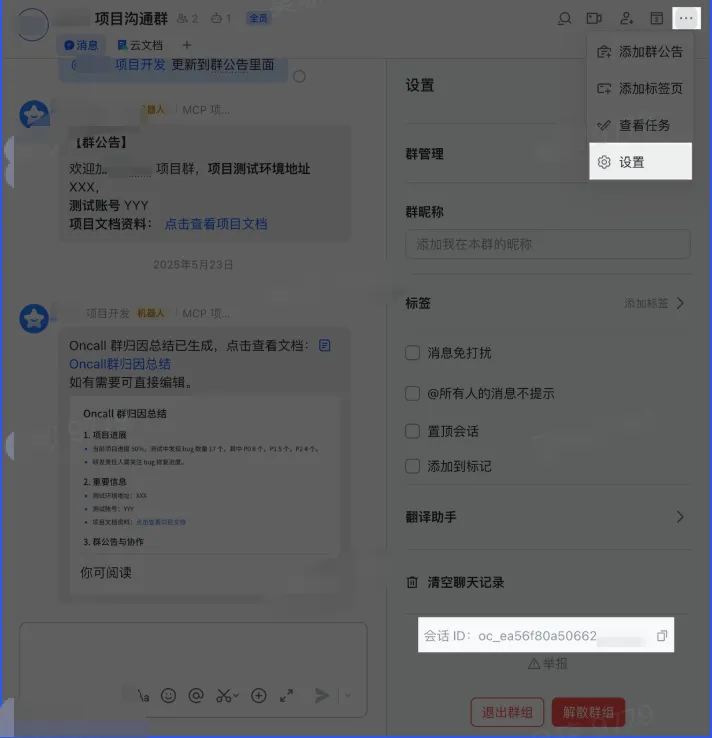 注意:这个模式在大群里容易刷屏,谨慎使用!需要额外在开发者后台申请应用身份权限:获取群组中所有消息(敏感权限)