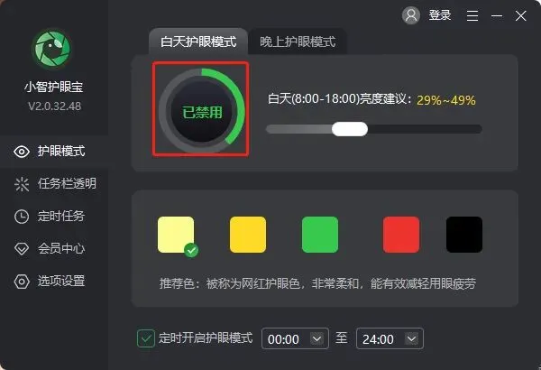 2、进入小智护眼宝的主界面,目前处于智能护眼状态,可以根据昼夜节律,智能调节护眼色。