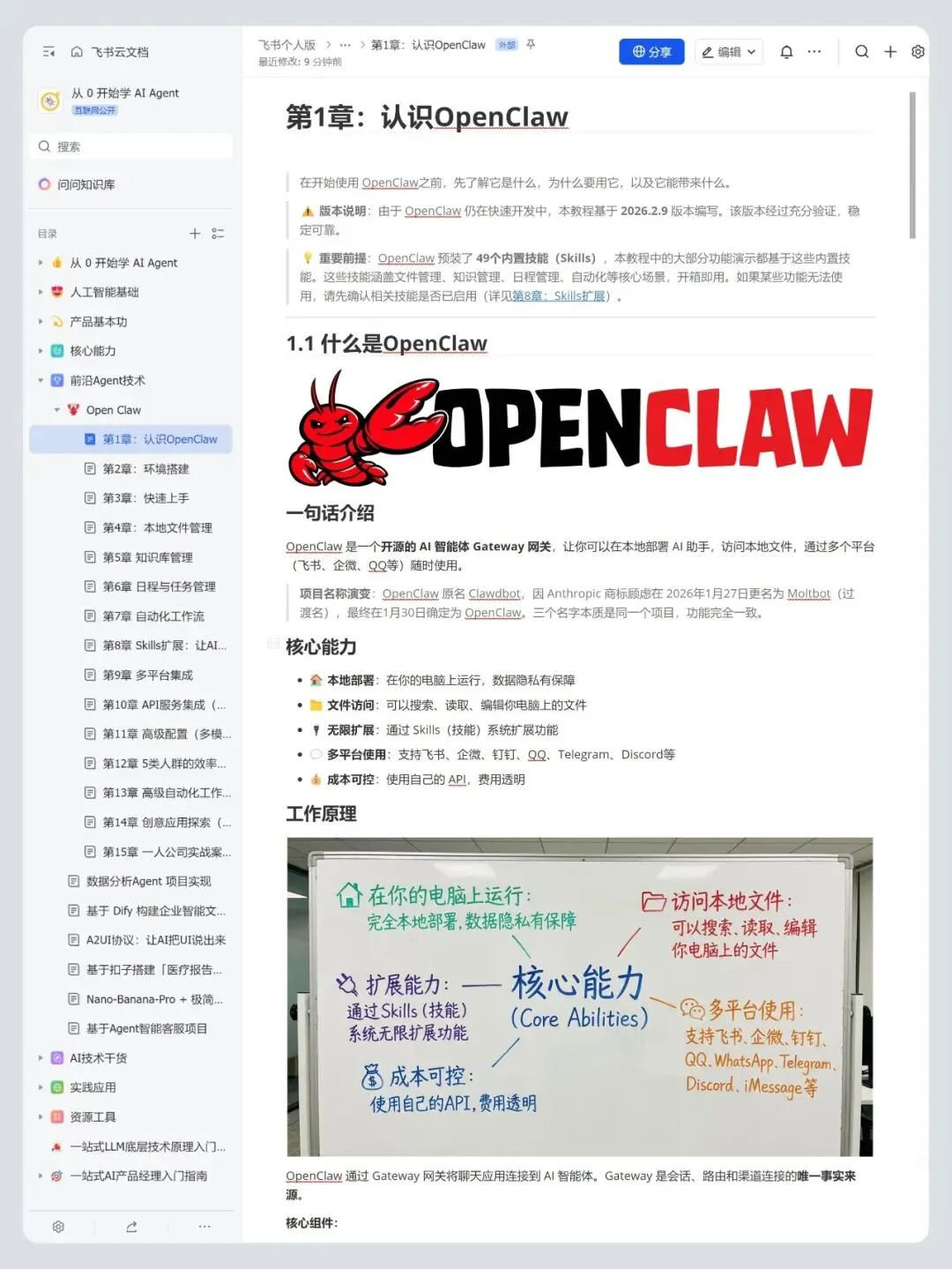 从0到1:我用OpenClaw搭建了11个AI Agent,它们居然学会了自我进化 (附学习手册)最近开发者圈子里最火的话题,非 OpenClaw 莫属。 这个由 PSPDFKit 创始人 Peter Steinberger 开发的开源项目,在 2026 年 1 月突然爆火,短短几天内 GitHub Star 数破万,各大技术社区都在讨论它。 为什么这么火?因为它真的能干活。关于AI Agent open claw 的学习资料获取方式:1 点赞+关注2 私信【资料】