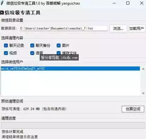 一款可快速清理微信垃圾缓存的工具,打开后即可自动识别你的微信号,可选择微信号分别清理,超级方便。