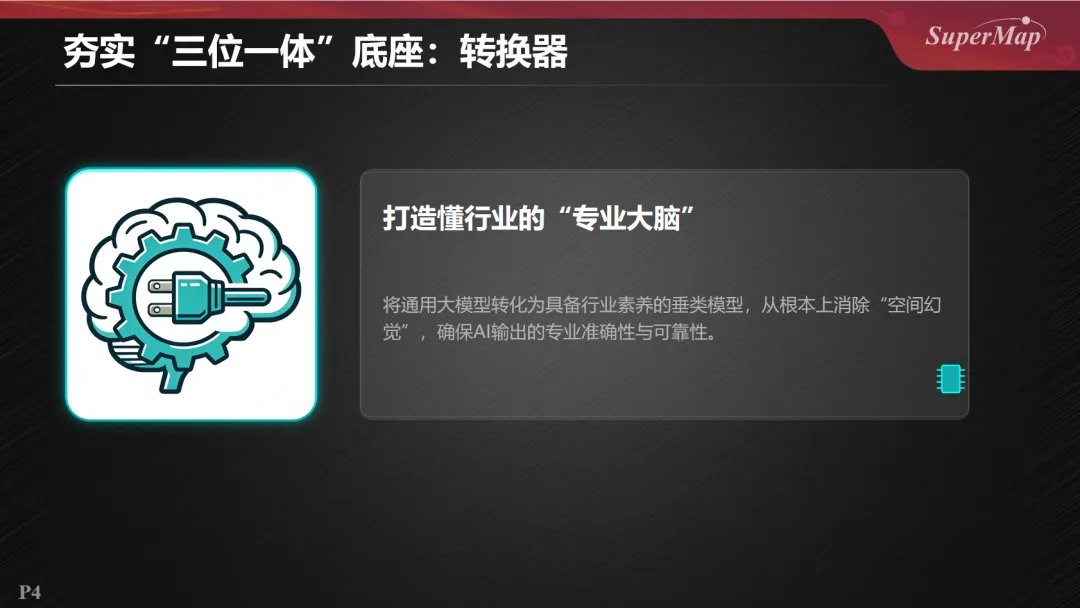 “转换器”:打造懂行业的“专业大脑”,把通用大模型转化成具备行业素养的垂类模型,从根本上消除“空间幻觉”;
