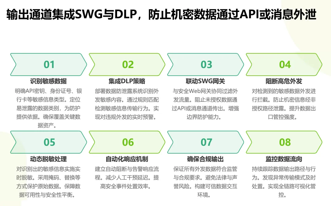 在出口侧,集成安全Web网关和数据防泄露系统,防止智能体通过API或消息通道向外传输机密数据。当规则引擎识别到高危行为时,系统能够在毫秒级自动熔断该会话,阻断攻击的实时落地。