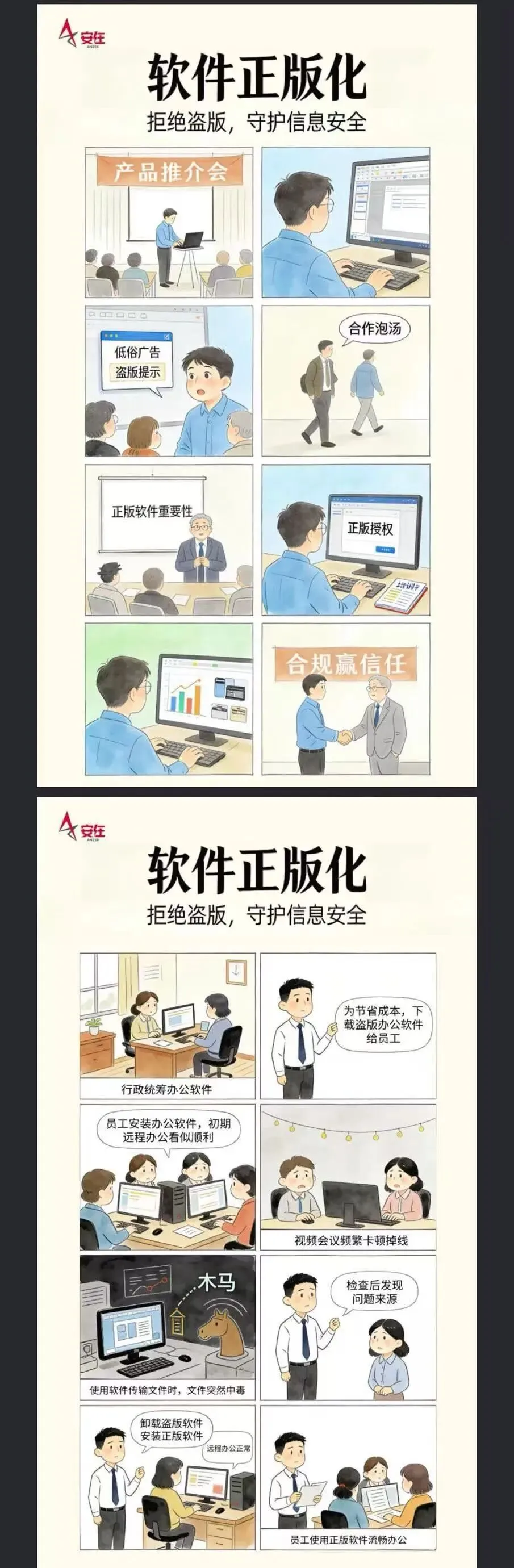 安在新媒体面向企业用户,推出“网络安全意识团购服务”,涵盖宣传素材、培训课程、威胁体验、游戏互动等,采用线上线下融合的方式,帮助员工掌握安全要点,并提供定制化安全策略咨询。