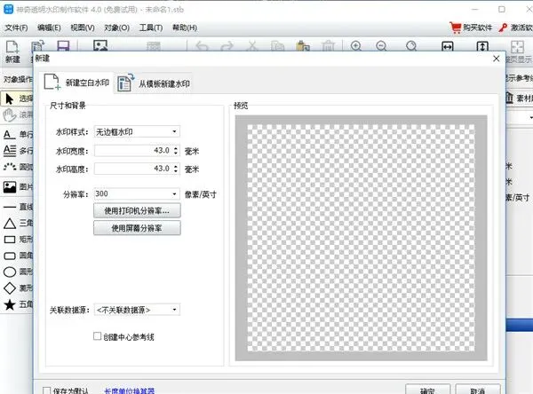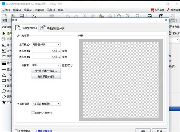 2、点击新建水印按钮弹出新建水印设置弹框,该弹框可以设置水印尺寸和背景,点击确定即可成功创建水印