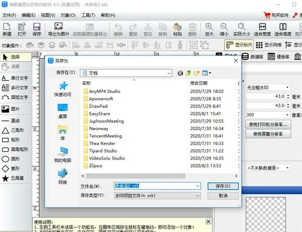 4、点击保存按钮弹出文件保存弹框,水印编辑好后可以点击保存按钮然后输入文件名,点击保存按钮进行水印保存