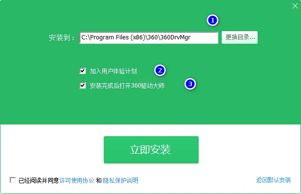①先√ 同意安装