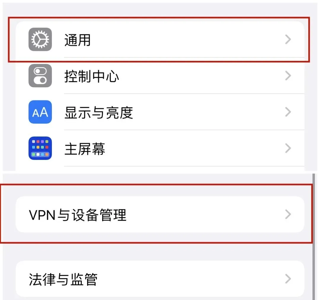 如果找不到第三步,请在苹果手机的设置-通用-VPN与设备管理里面查找