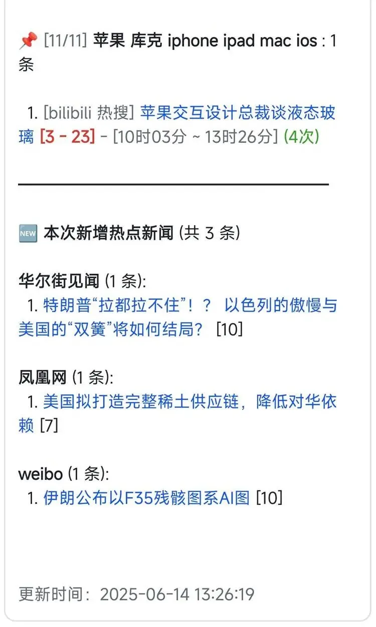 以前是我去找信息,容易刷着刷着注意力漂移,半小时过去了只记住了几个热搜标题。现在是信息按时推过来,我只需要判断"这条值不值得写",其他环节全自动化了。