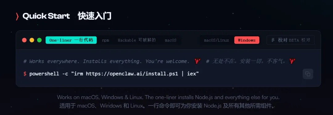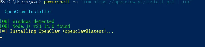 powershell -c "irm https://openclaw.ai/install.ps1 | iex"